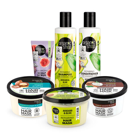 O Kit Cronograma Capilar Premium base Reconstrução Organic Shop é composto pelos seguintes produtos: