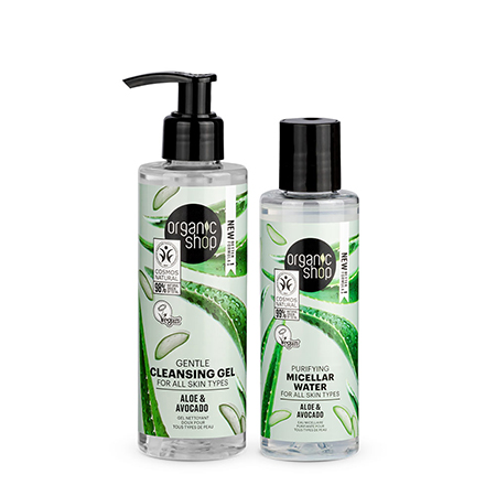 O Kit Limpeza Facial Básico Organic Shop - Aloe Vera + Abacate é composto pelos seguintes produtos: